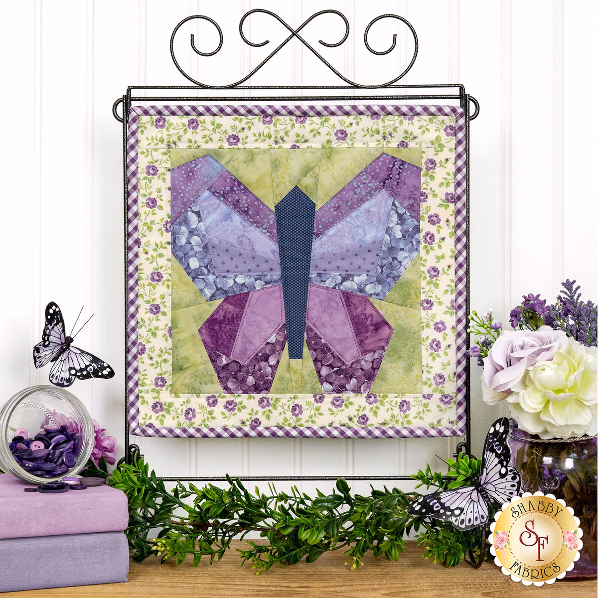 Join Jen as she shares how to make the Foundation Paper Piecing 4 design for April! This project captures the beauty of spring with a beautiful butterfly in sweet florals and lovely batiks. Each wall hanging finishes at approximately 12" x 12", just right for adding a handmade touch to a little nook or small space in your home.